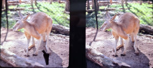 I shot this on the Stereo 12 with Mamiya 105mm lenses, to get a radically different feel from the shot it’s paired with. I tried to soften the background a bit via selective focus to obscure the fact that I’m slightly exceeding my depth budget. Generally the eyes don’t try to focus on out-of-focus details, but this is all experimental! Let me know how it works for you! Shot on 65mm 500T IMAX film and printed as an M-Chrome. The negative got a little brutalized on this one, adding some scratches. (The image shown here was a different take than the slide; the slide version is better, but we only scanned this take.)