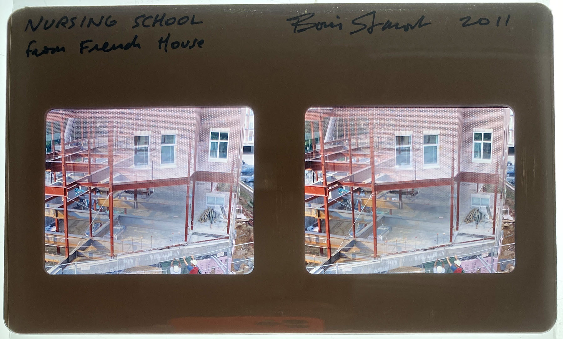 Like the Ruffin Hall image above, for a new Nursing School building I blended the various images so that a progression can be seen progressing diagonally from the earliest imagery in the lower left, to the upper right side, showing the finished exterior.